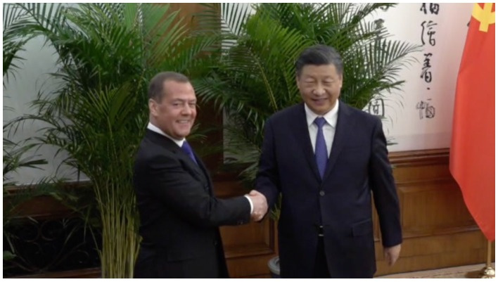 Орусиянын Коопсуздук кеңешинин төрагасынын орун басары Дмитрий Медведев Пекинге барып, Кытайдын төрагасы Си Цзиньпин менен жолугушту. Бул тууралуу Интерфакс жазып чыкты.