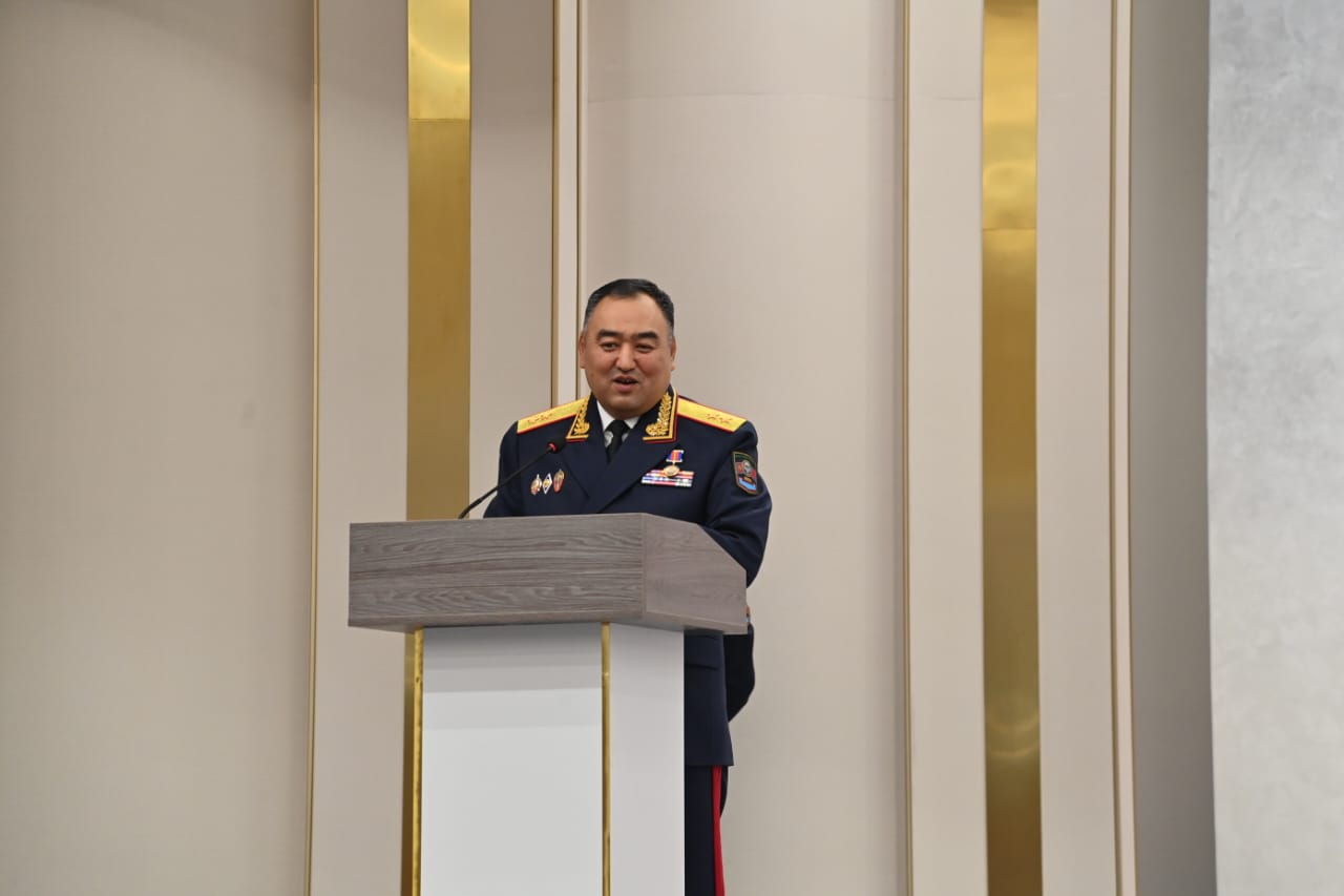 Иш-чаранын жүрүшүндө өзгөчөлөнгөн милиция кызматкерлерине алардын коомдук тартипти жана коопсуздукту сактоого кошкон салымын билдирген медалдар тапшырылды.