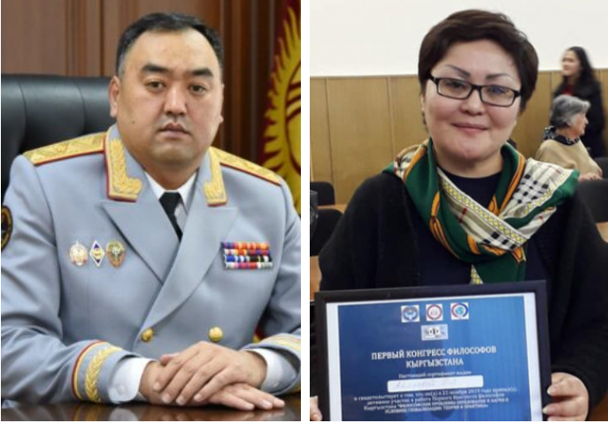 Кыргыз Республикасынын юстиция министрлигинин алдындагы соттук-эксперттик кызматтын жетекчиси Кочкорбаев Иманилла Нуркамалович жана анын алдында иштеген чала сабат эксперт Ж. Семенова менен жалаң хиджабга оронгон теолог-дин таануучулар,