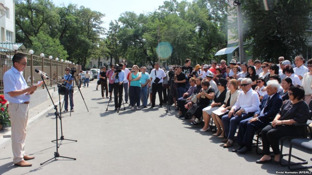 "Азаттык" радиосунун Бишкектеги кеңсесинде өтүп жаткан журналист Уланбек Эгизбаевди эскерүү жыйынына экс-президент Роза Отунбаева баштаган саясатчылар, президенттин жана өкмөттүн аппаратынын өкүлдөрү, министрлер, депутаттар, журналисттер жана аны тааныгандар катышууда.