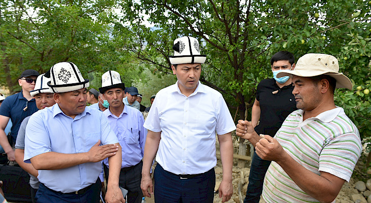 Алсак, Марипов Лейлек районунун Катраң айылына барып, өзгөчө кырдаалдын кесепеттерин жоюунун жүрүшү менен таанышты.