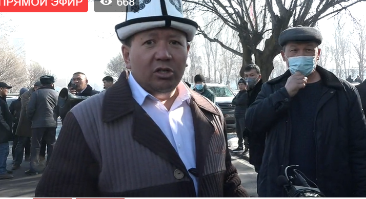 Өкмөт башчылыкка талапкерлиги каралып жаткан Улукбек Мариповго каршы болгон бир нече адам Ак үйдүн алдына митингге чыгышты.