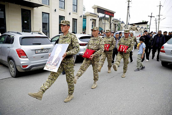 Муниципалитеттен билдиришкендей, коштошуу зыйнатына мэриянын, шаардык социалдык өнүктүрүү башкармалыгынын, Ош шаардык ардагерлер биримдигинин, аскер гарнизонунун, Россиянын Ош шаарындагы Башкы консулдугунун өкүлдөрү, ардагердин туугандары жана жакындары катышты.