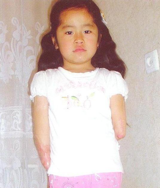 Алгач ирет 6-7 жашында колуна протезди Украинадан салдырганбыз. Кийин ал батпай калып Германиядан салдырдык. Азыр кызым 13 жашка чыкты, чоңоюп, ал протези да батпай калды. Ширин борборубуздагы №83 мектепте 4-классты бүттү. Ден соолугунун айынан мектепке эки жыл кеч барган.