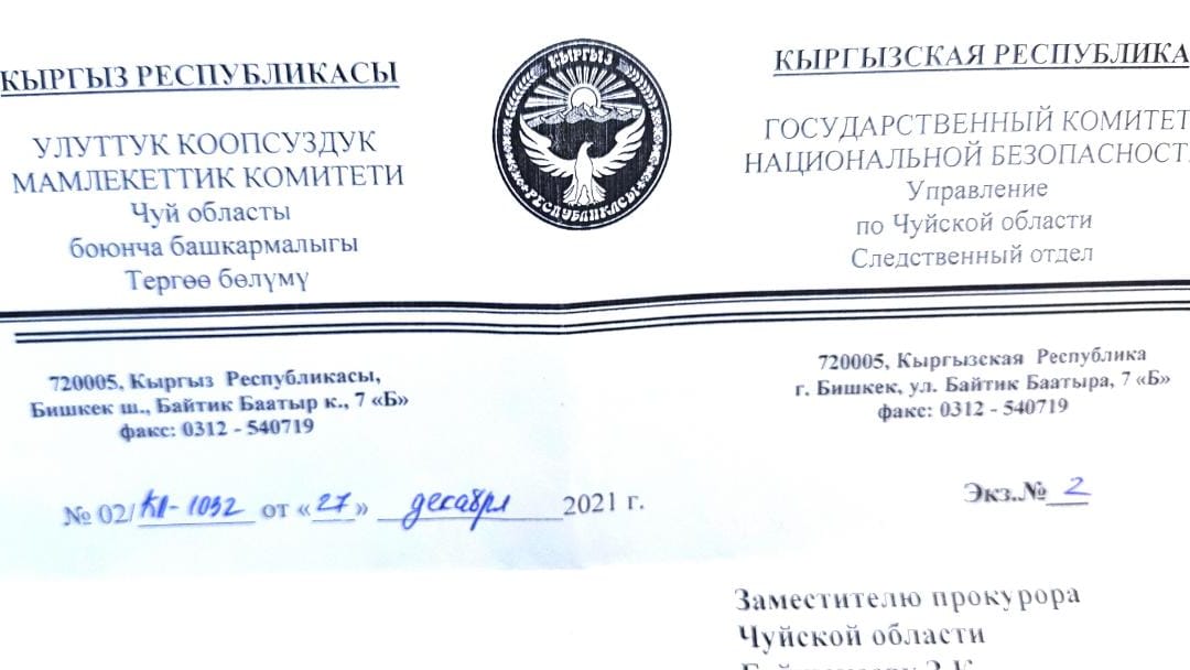 Биз бир туугандардын атынан Президентке, Жогорку Сотко Прокуратура, улуттук коопсуздук органдарына жаздык. Каттар Президенттик администрациядан келди, Башкы Прокуратурага жибердик деп, Башкы прокуратурадан келди Чүй областтык Прокуратурасына жибердик деп, алар болсо Ысык Ата райондук прокуратурасына жибердик деп бир, эки жолу окшош кат жиберди. Жогорку сот элдин муң зарын угуп, жооп бергенге жараган жок.