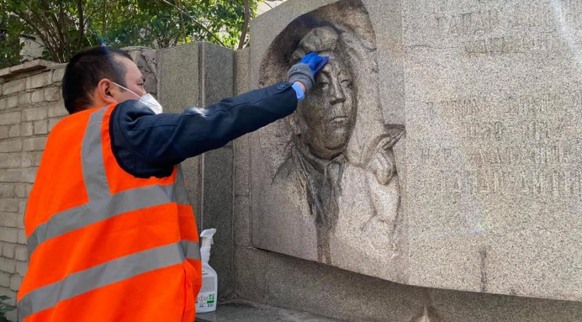 Аталган дарекке «Тазалык» муниципалдык ишканасынын кызматкерлери дароо барып, эстеликти жууп тазалашкан.
