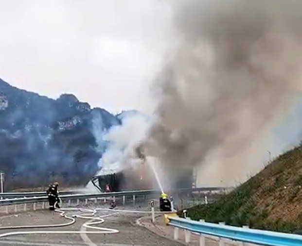 Кытайда 26 тонна фейерверк алып бара жаткан жүк ташуучу унаа тоголонуп, күйүп кетти. Бул тууралуу Rai77° порталы билдирүүдө.
