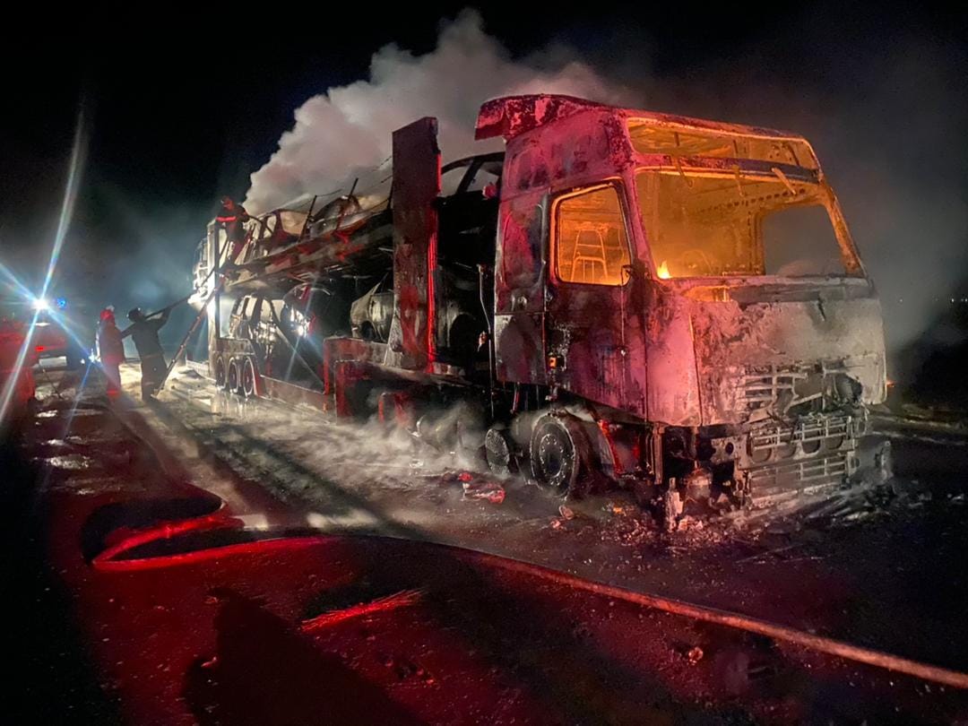 Чет өлкөдөн трал менен унаа ташып келе жаткан айдоочу өрт кырсыгына кабылды. Бул тууралуу айдоочу Белек Аттокуров билдирди.