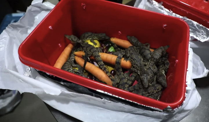 Ташкенттеги аэропортко барган жүргүнчүнүн жанынан крокодилдин 54 баласы табылды. Өзбекстандын тиешелүү органынын расмий маалыматы боюнча, жүргүнчү бул ишин жашыруу үчүн желим контейнерлерди пайдаланып, сабиз, лимон, банан жана башка жашылча-жемиштердин арасына каткан.