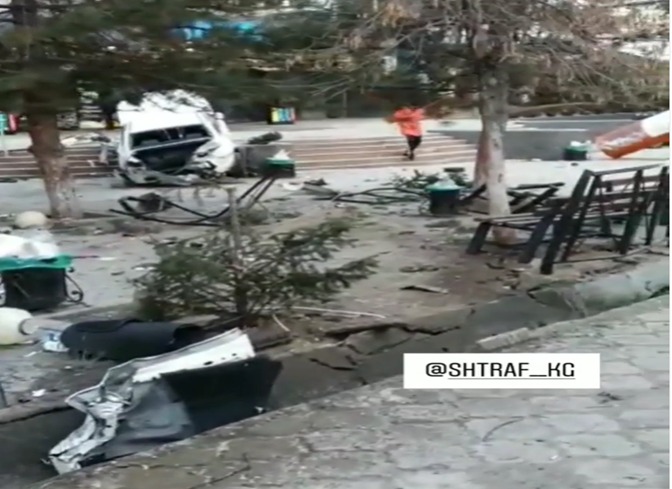 "Hyundai Sonata" унаасын 27 жаштагы Н.Т. (эркек киши) башкарып жүргөн. Айдоочу башкарууну жоготуп, имараттын алдындагы тепкичтердин четиндеги тосмого урунган. Ошол жердеги отургуч, бак жана бетон реконструкция жарактан чыгып, автоунаа дагы талкаланды.