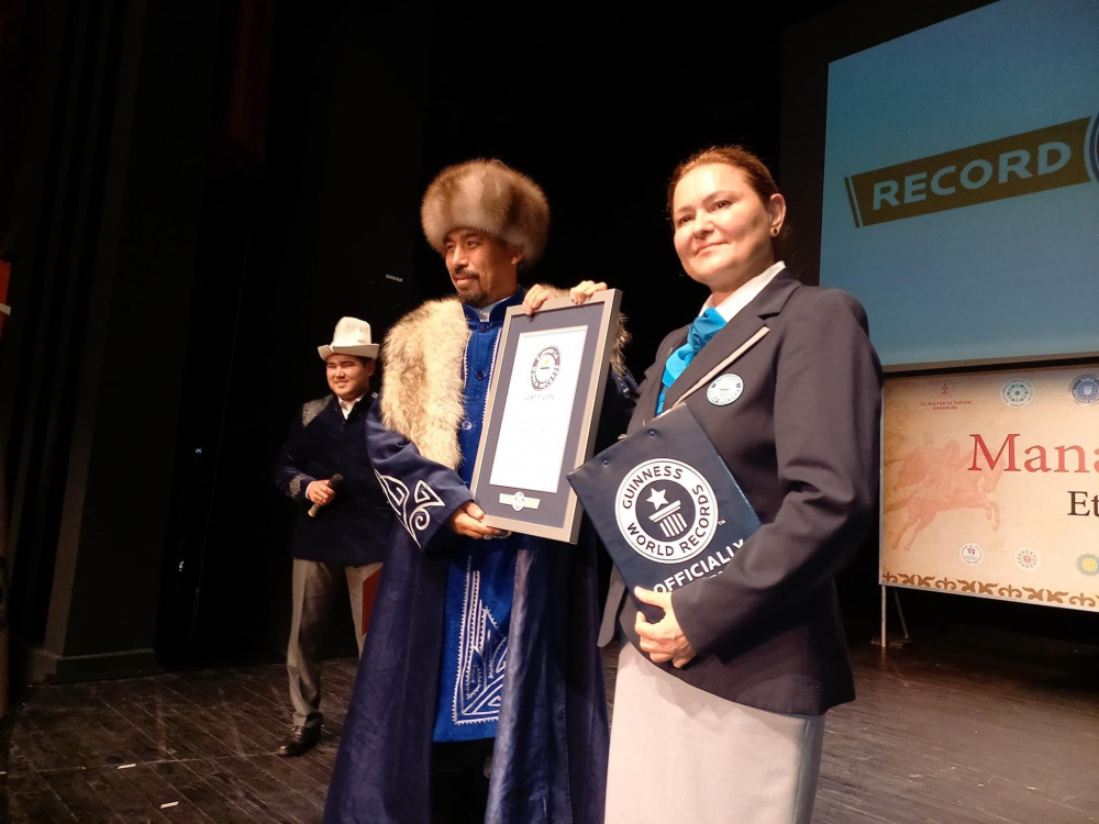 "Узак мөөнөткө үн чыгарып сүйлөө боюнча рекорд койду" болгон Рыспай Исаков Кыргызстанга келип, "Манасты узак мөөнөткө айтып салдым" деп кыйынсынган. Ооба, берилген сертификатта ошентип жазылды, бирок Гиннестин документтерине Манас айтты болуп катталган.