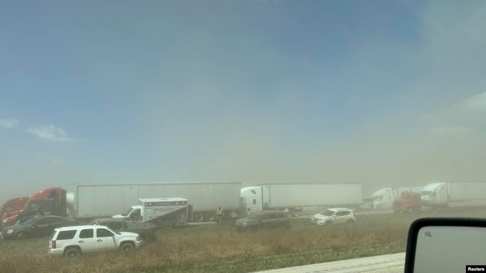 АКШнын Иллинойс штатындагы чаң сапырган катуу шамалдан жол көрүнбөй, жүзгө жакын авто унаа кырсыкка учураган. Анда 60тай жеңил жана 30 жүк ташуучу унаа кагышкан.