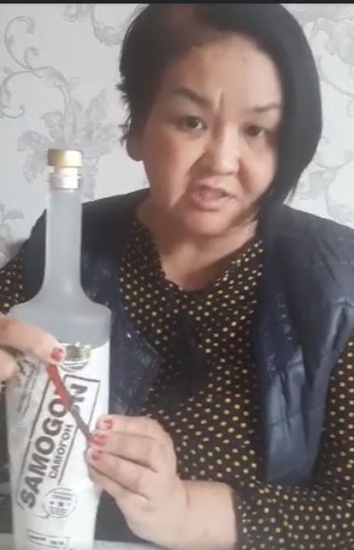 Кадрда сыртынан кадимки «Самогон» көрүнгөнү менен чындыгында ал «Шпилька» арагы экени айтылат.