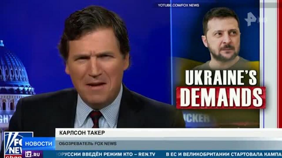Fox News телеканалынын алып баруучусу Такер Карлсон Украинанын президенти Владимир Зеленскийге кайрылып, анын АКШдан акча сураганы үчүн сынга алды.