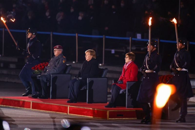 Берлинде Германиянын Федеративдүү Республикасынын коргоо министерствосунун короосунда Ангела Меркелди премьер-министрлик кызматтан коштошуу жөрөлгөсү болуп өттү.