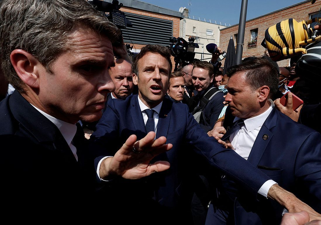 Окуя 27-апрелде базарда болгон, ал жерде жергиликтүү элдин калың тобу саясатчыны курчоого алган. Бир маалда белгисиз бирөөлөр жакында эле кайра шайланган мамлекет башчыны көздөй бир нече помидор ыргыткан. Сакчылар дароо Франциянын президентин калкалап, анын башына кол чатыр тоскон.