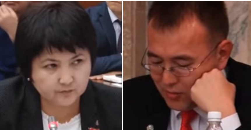 Мына ушул депутатыбыз өткөн апта этеги Жогорку Кеңештин жыйынында Улуттук банктын төрагасы, илимдүү-билимдүү делген Толкунбек Абдыгулов менен вице-премьер-министр Замирбек Аскаровдун уятын чыгарды. Анда банктын төрагасы депутат айымдын "Бүгүнкү күндө банкоматтар менен канча айыл камсыз болгон?" деген жөнөнкөй суроосуна жооп бере албай койсо, Замирбек Аскаровду катындарча айтышпай эле, ишти оң жагына чечип берүүсүн айтты.