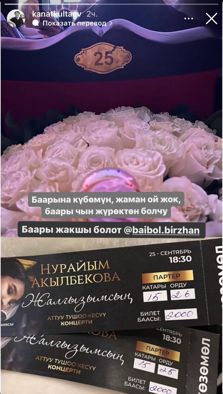 Казак ырчысы Биржан Байболдун продюсери Канат Култаев социалдык тармактагы баракчасына ырчы мырзанын иш-аракети чын жүрөктөн болгонун жазды.