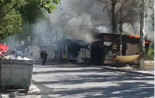 Күбөлөрдүн айтымында, темирден жасалган павильондордун бирин кесип жаткан кезде учкун коңшу дүкөнгө тийип өрт чыккан.