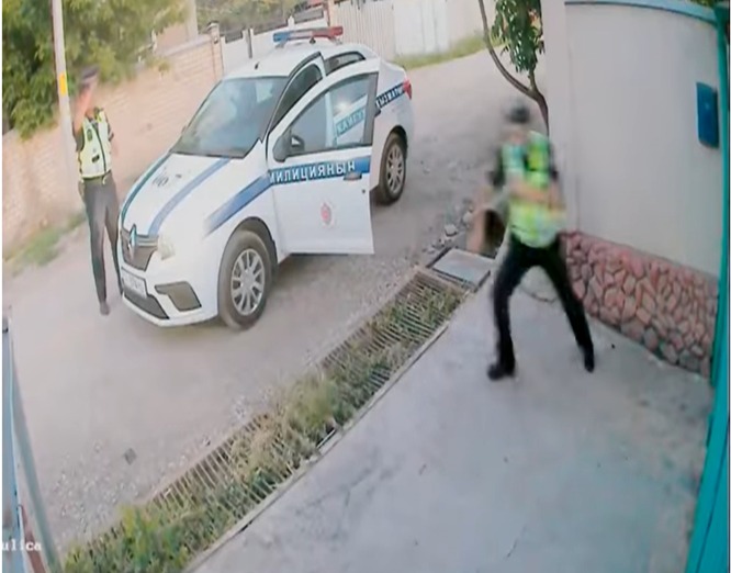 Интернетте Бишкектин Кайгуул милициясы автоунаасы менен мотоциклчен адамдын артынан үйүнө чейин барып, ошол маалда короодон эки ит чыга калып, аларды кууган видео тарады.
