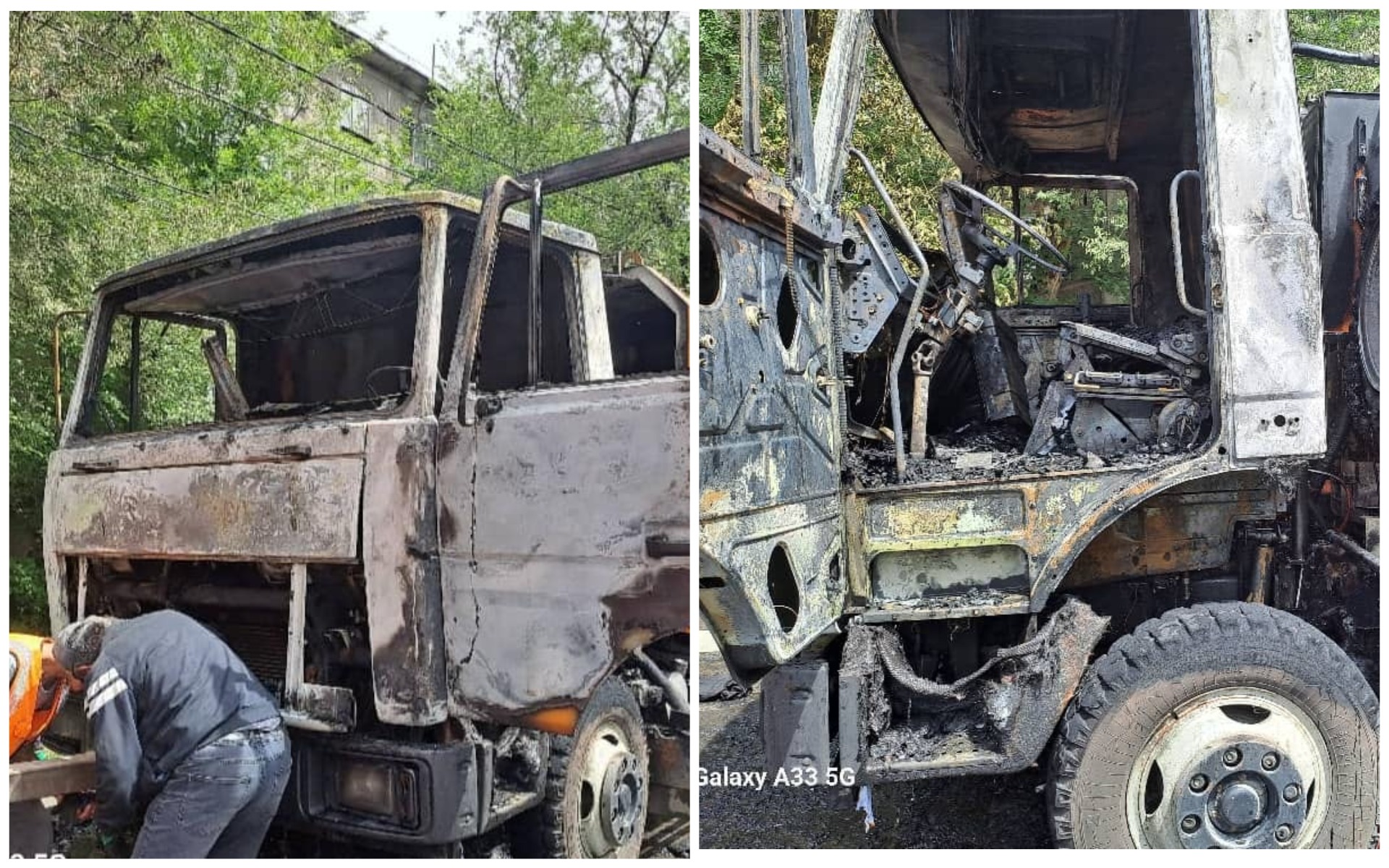Бишкекте таштанды ташуучу унаа күйүп кетти. Бул тууралуу Өзгөчө кырдаалдар министрлигинен билдиришти.