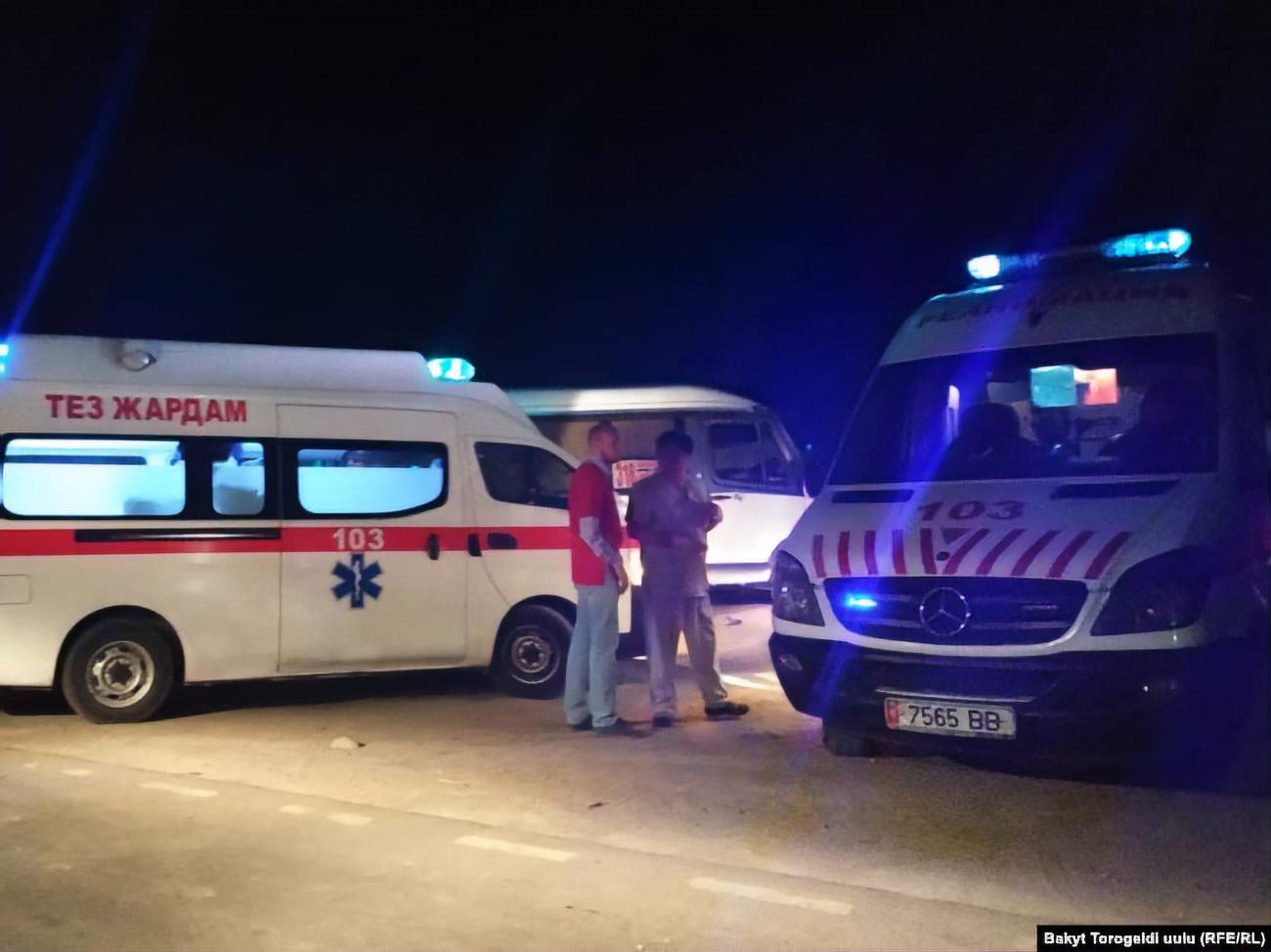 Тез жардамдын унаасы Mercedes Benz менен кагышкан. Кадрлардан дарыгерлердин унаасы жолдун жээгинде оодарылып жатканын, жанында жаракат алган фельдшер отурганын көрүүгө болот.