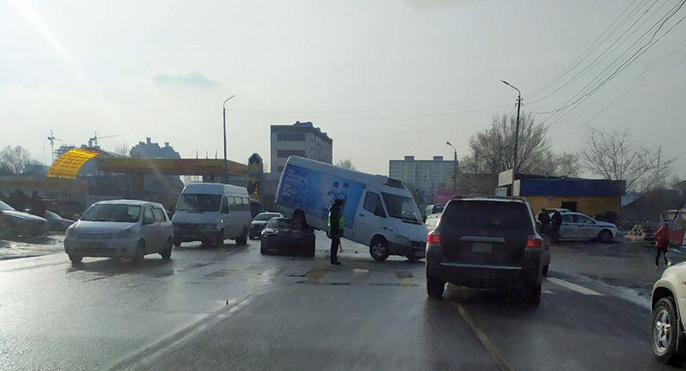 Анда Mercedes-Benz үлгүсүндөгү кичи автобус менен Mitsubishi GTO спорттук автоунаа жана Mazda үлгүсүндөгү автоунаа кырсыкка кабылышкан. Жыйынтыгында спорттук автоунаа жүк ташыган кичи автобустун алдына кирип кеткен.