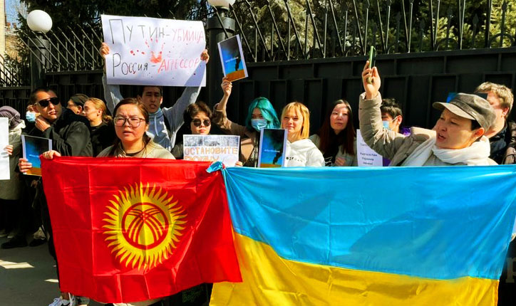 Мындан 3 апта мурда Орусия Украинага каршы согуш баштагандан кийин Бишкетеги анын элчилиги алдында бир нече каршылык митинги уюштурулган жана бир гана чакан митинг Москванын пайдасына болгон. Укук коргоочулардын маалыматы туура болсо, кыргыз милициясы менен соттору өз чечимдерин – чет мамлекеттин таасири алдында кабыл алат.