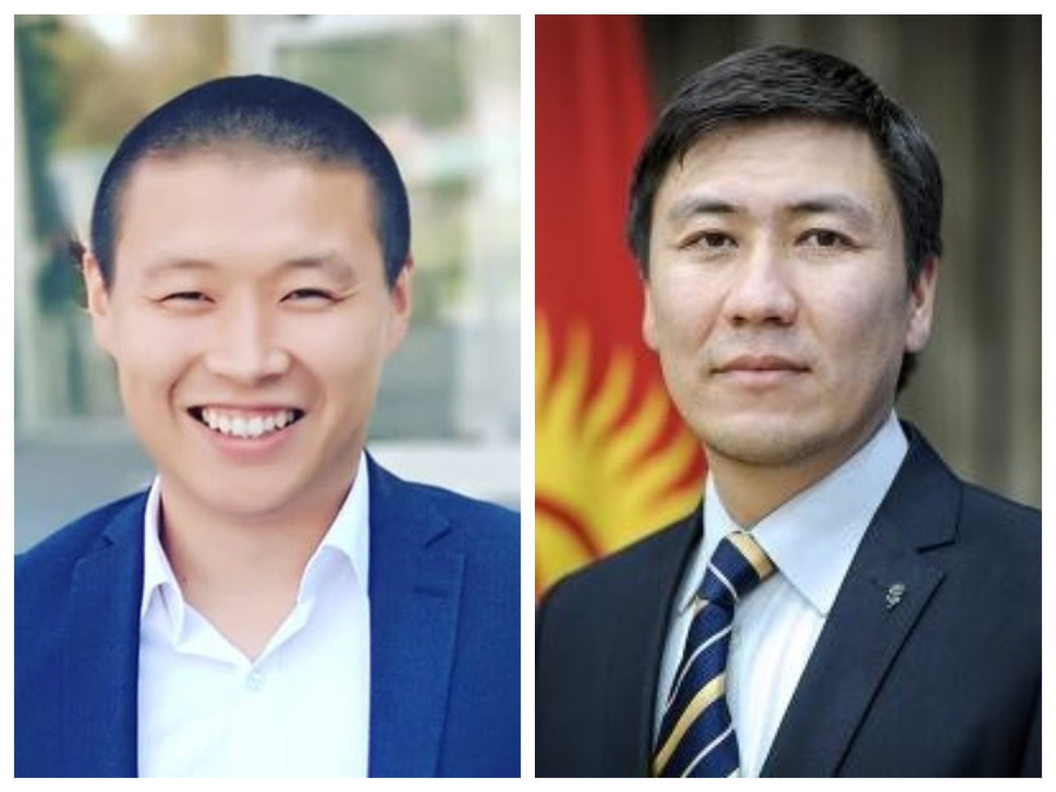 Эки министр тең презентациясын конокторго түшүнүктүү болушу үчүн англис тилинде тааныштырышкан.