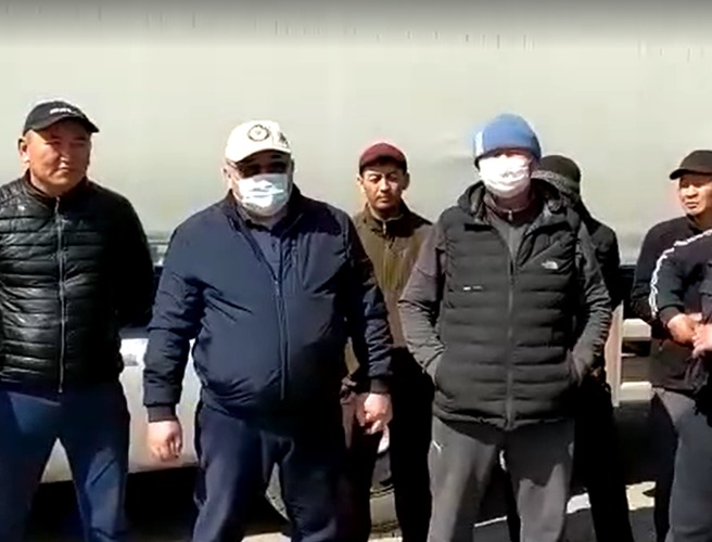 “Биздин унааларда Кыргызстанга керектүү товарлар бар. Алардын ичинде, ун, кант, чай жана башка керектүү азык-түлүктөр бар. Казак бийлиги “товарларды таштап, жеңил унаа менен өтө бергиле” деп жатат. Товарларды каяка таштайбыз?... Эгер ушунча жүк кирбей калса, силер базарга барып туруп, “бир кап ун 2 миң болуп кетти, эмне үчүн бааны түшүрбөй жатасыңар” дейсиңер. Эй урматтуу өкмөттүн өкүлдөрү бул ун 3 миңге барат. Анткени, Кыргызстанда буудай өндүрүмдөрү өндүрүлбөйт. Мындай учурда Казакстандын бийлиги менен тил табышып, ушул маселени чечип берүүнү суранабыз”,-деп айтылат кайрылууда.