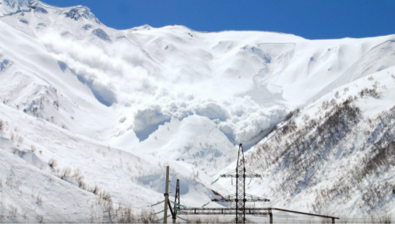 Видеодон тоонун боорунда эки кишинин жүргөнүн, андан соң аларды көчкү басып калганын көрүүгө болот.