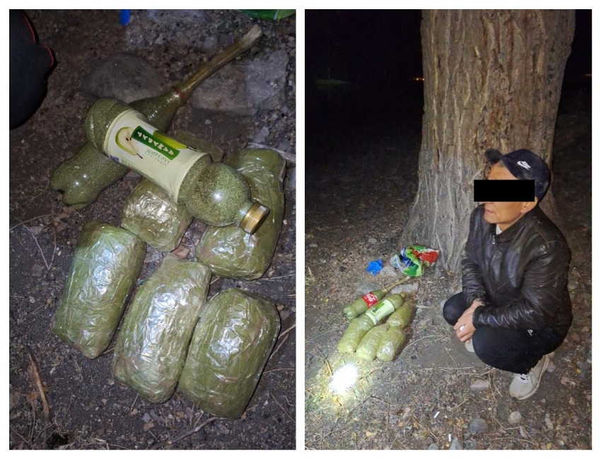 Жеке текшерүү учурунда шектүү жарандан скотч менен оролгон беш брикет табылган, алардын ичинде кара куурайдын өзгөчө жыты бар кочкул жашыл зат болгон.
