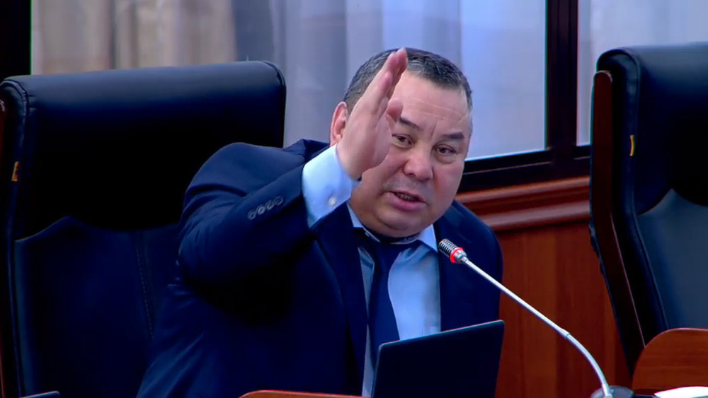 "Баалар өсүп жатат, муну ким токтотот? Өкмөт Японияга кетиптир. Аман-эсен келсин. Бирок, алар элдин жон терисин сыйрыганы жатабы? Салыктын үстүнөн салык көбөйүп жатат. Мына жаңы жылдан соң, салыктарды курулуш жана башка тармактарга киргизип жатат. Салыкты көбөйткөндүн ордуна азыркы салыктарды тиешелүү түрдө чогултуп албайсыңарбы. Кайсы жакка барба өкмөт минтип жатат, антип жатат, бизнести таштап, Кыргызстандан кетем деген жарандар. Биз бардыгына макул болуп келе жатабыз. Бирок бизнеске салыкты көбөйтпөгүлө да. Бизнестин акыркы нанын аласыңарбы? Алмаз Ахунжанович, (ред. өкмөттүн парламенттеги өкүлү) жакында салыкты көбөйтүү тууралуу жаңы мыйзам алып келгени жатыпсыңар. Алып келбегиле аны. Ишкерлердин кыжырына тийип эмне кыласыңар? Анда дем алып жаткан абага дагы салык салгыла. Баары бүттү, ошол эле калды", - деди депутат.