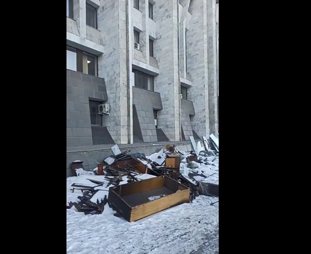 «Ак үйдүн октябрь окуяларында талкаланган эшик-терезелери ушул убакка чейин алындай, кар астында калган», - дейт активист Орозалиев Мирлан.