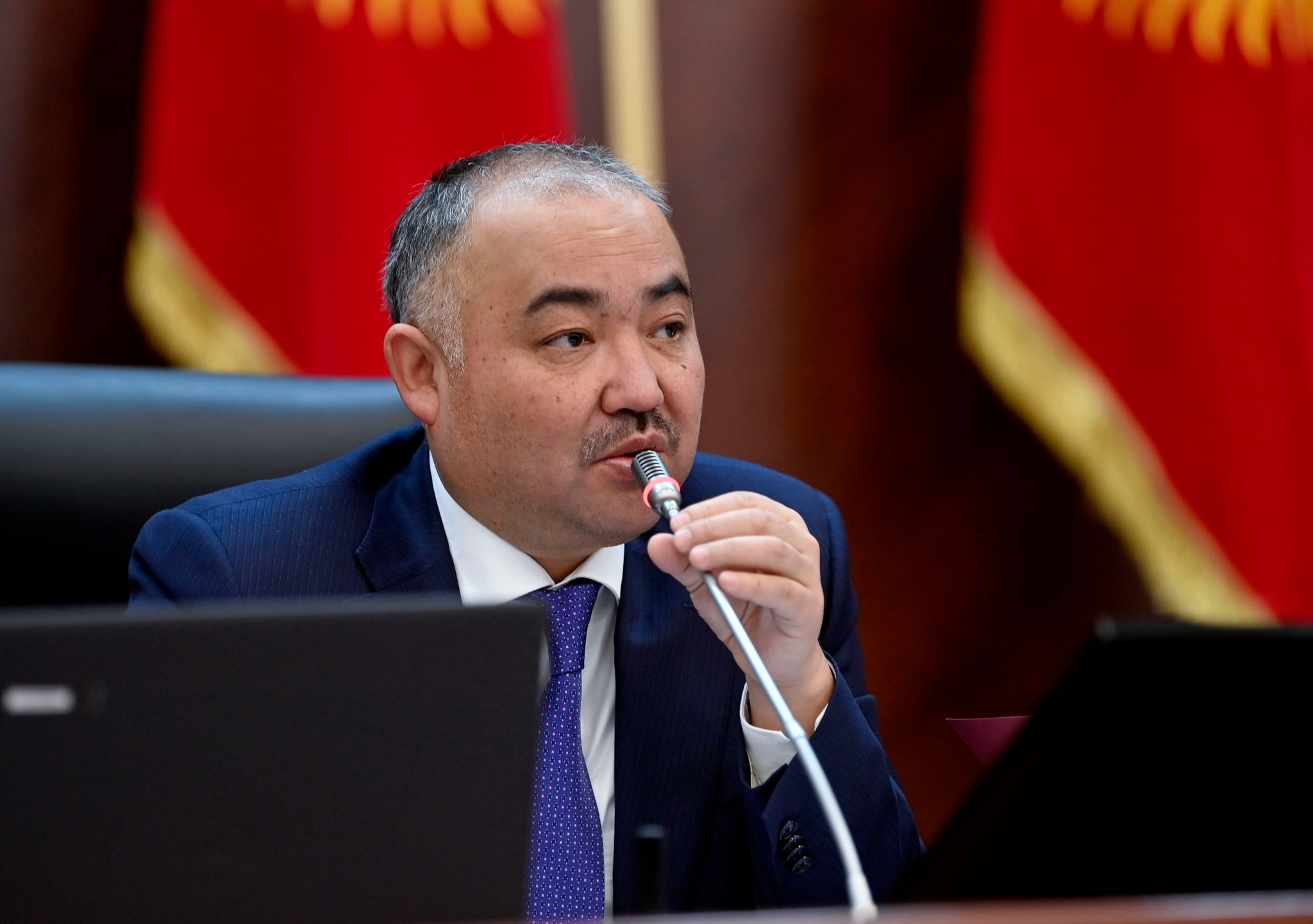 Жыйында Жарнак жөнүндө мыйзам долбоору каралганы жаткан. Төрага чакырылган аткаминерлердин аты-жөнү орус тилине ыңгайлашып жазылганын билдирип, туураа жазууга үндөдү.