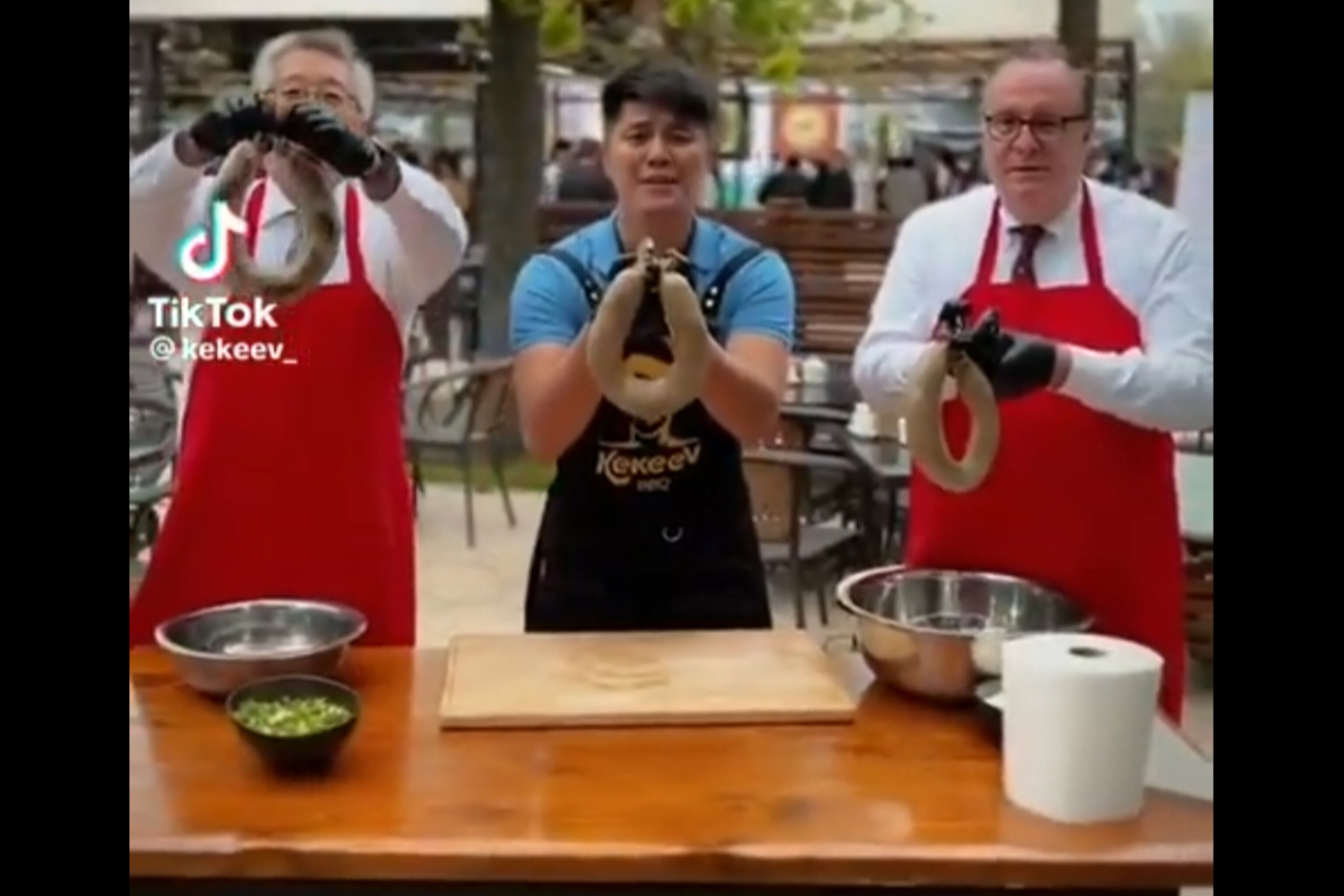 Анда Кыргызстандагы ашпозчу менен бирге жогорку кызматтагы адамдар биргеликте кыргыз улуттук тамагын бышырган.