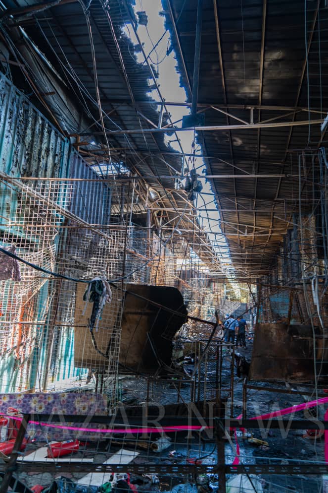 Мындан тышкары, тез тамактануучу жай, шаурма жана суусундук саткан тогуз павильон өрттөнгөн. Күйгөн 42 контейнерде кийим-кече сатылганы айтылды.