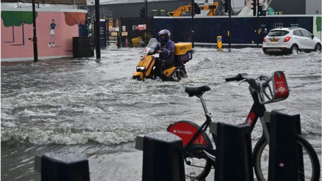 Лондондогу катуу жаандын суусу бир катар турак үйлөрдү, жолдорду жана метролорду каптады.