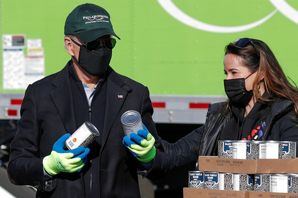 Видеодо Байден башка ыктыярчылар менен кошо беткап жана кол кап кийип, консерваланган азыктарды жакырларга арналган азык-түлүк топтомдорунун кутучаларына салып жаткандыгын көрүүгө болот. Кайрымдуулук акциясын Түштүк Филадельфиядан Филабунданс уюштурган.