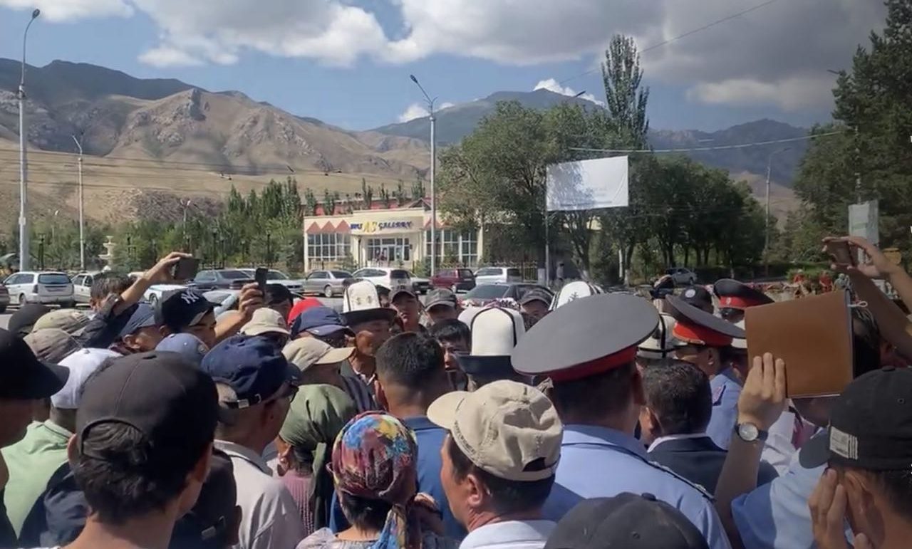 Нарын шаарында бүгүн, 12-августта облустук администрациянын алдында Эки-Нарын айылынын жүздөй тургуну Чырпыкты аймагындагы суудан алтын чайкоого каршы нааразылык акцияга чыкты.
