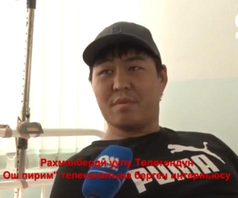 Жаран Рахманберди уулу Төлөгөндүн айтуусунда аны коркутуп, уруп-сабап, андан кийин тапанчадан жаракат алгандан кийин ооруканада жатканын дагы билдирген.