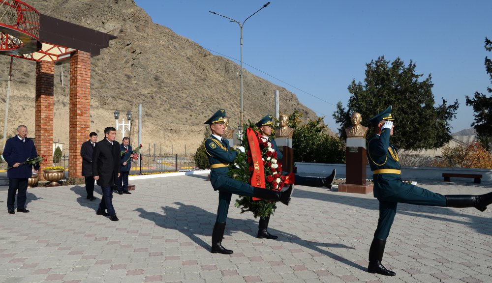 Президент Сооронбай Жээнбеков ошондой эле Абдыкадыр Орозбековдун эстелигине гүл коюп, Кадамжай шаарындагы музейине барды.