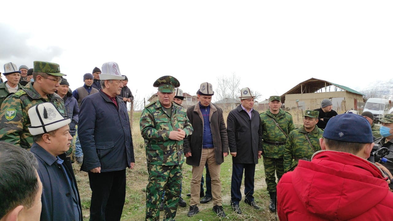 УКМКнын төрагасы Камчыбек Ташиев Ош облусуна караштуу Өзгөн районунун эли менен жолугушуп, Өзбекстандын Ташкент шаарында өткөн мамлекеттик чек ара маселеси боюнча биргелешкен сүйлөшүүлөрдүн жыйынтыгы тууралуу маалымат берүүдө.