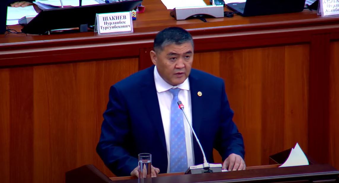 Бүгүн, 17-ноябрдагы Жогорку Кеңештин жыйынында УКМКнын төрагасы Камчыбек Ташиев Кемпир-Абад маселеси боюнча маалымат берип жатат.