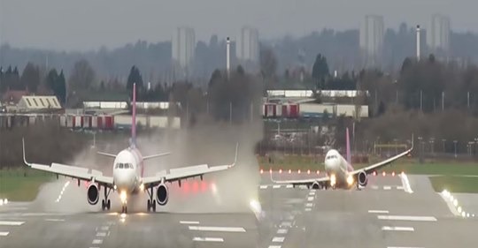 Кадрдан алгач учактын канаты бирде өйдө, бирде ылдый болуп тең салмактуулугун сактай албай, калдаңдап, абада асылган сымал калганын көрүүгө болот. Бир нече ирмемден кийин учак жерди көздөй бир канаты менен капталдап бара жатып кайра оңолуп кеткен. Учкучтар бир нече жүздөгөн жүргүнчүсү бар учакты аман-эсен кондурууга жетишкен.