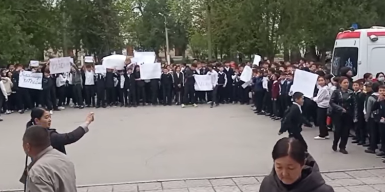 А.Каниметов атындагы №1 мектеп-гимназиясынын окуучулары жана мугалимдери митингге чыгышты. Нааразычылык акциясынын видеосу социалдык тармактарга жарыяланды.