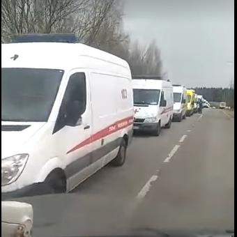 Видео-тасмадан катар тизилген тез жардам кызматынын унаасын көрүүгө болот.