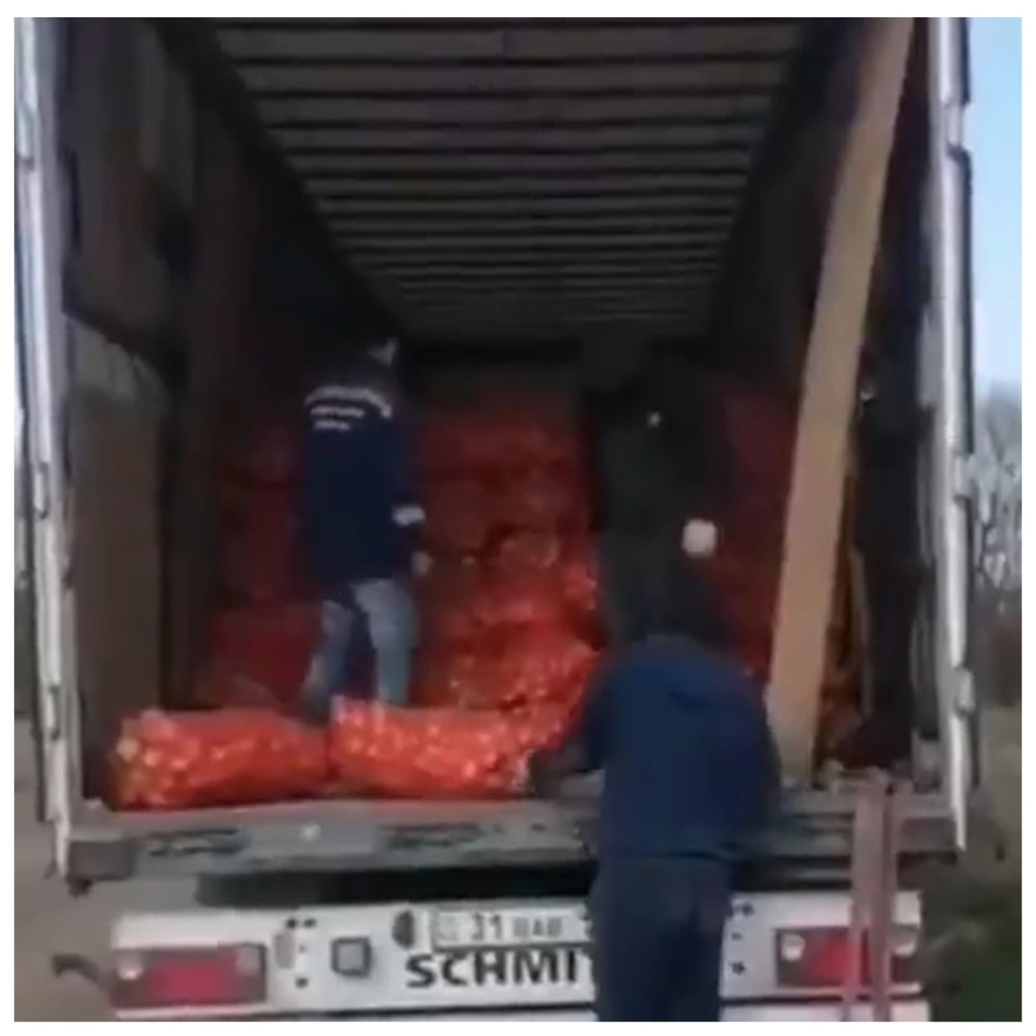 Төмөнкү берилген видеотасма 25-апрелде тартылган. Анын маалыматына таянсак, окуя 25-апрелде Москвада болгон. Анда бир нече адам жүк ташуучу унаадан сатылбай калган пияздарды мүшөгү менен ыргытып жатышканын көрүүгө болот.