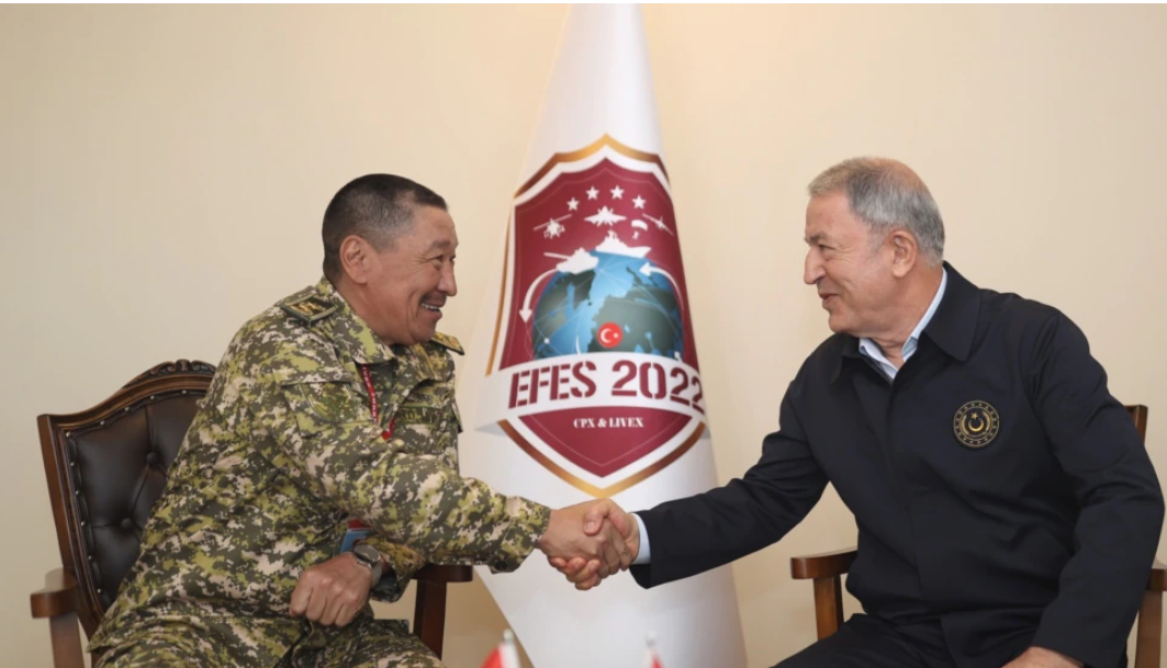 Анда министр Хулуси Акар "Эфес 2022" аскердик машыгуулардын алкагында Кыргызстандын коргоо министри Бактыбек Бекболотов менен Измир шаарында жолукканы кабарланды.