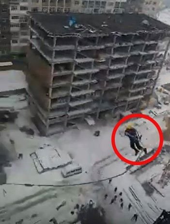 Демек, видеодогу адамдар аталган компания куруп жаткан имараттан секиришүүдө. Ал эми “Бишкектеги адамдар” дегенибиз – азырынча массалык түрдө мындай бийик, көп кабаттуу үйлөр Бишкекте гана курулуп жатат.